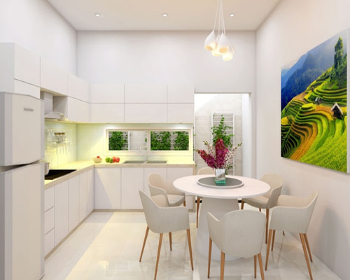 Trần nhà và các bức tường của phòng ăn nên có nhiều ánh sáng, nếu không nó sẽ ảnh hưởng đến sự thèm ăn, có thể sử dụng đèn chùm hoặc đèn tường, đèn phụ trợ.